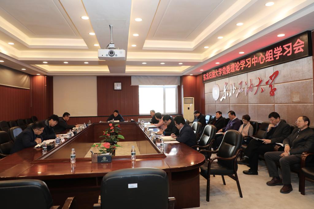 (文/图 李响)11月23日,我校党委理论学习中心组在机关四楼会议室举行专题学习会,校党委理论学习中心组成员参加学习,校党委书记孙明学主持会议并讲话。他强调,要认真学习贯彻党的十九届五中全会精神,不断增强“四个意识”、坚定“四个自信”、做到“两个维护”,把思想行动统一到党中央决策部署上来,谋划学校“十四五”发展蓝图,开创高水平百年大学事业发展新局面。