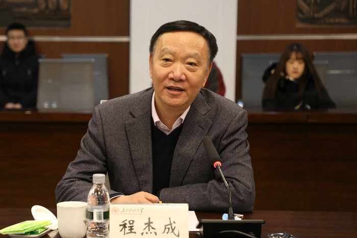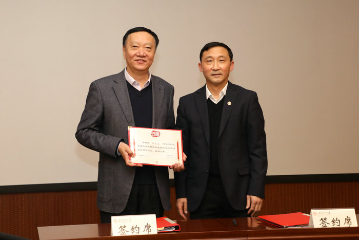 仪式上,校长蒋明虎与程杰成教授签订聘用合同,并颁发聘书。