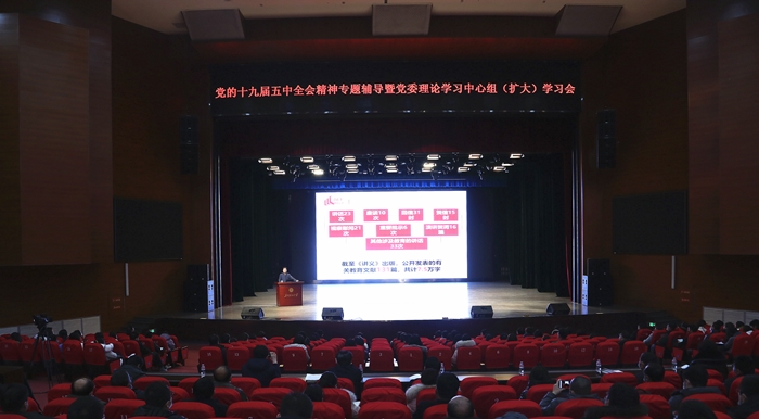 (记者 刘桐同 摄影 樊星)12月4日上午,我校在音乐厅召开党的十九届五中全会精神专题辅导暨党委理论学习中心组(扩大)学习会,邀请东北师范大学马克思主义学部部长庞立生教授作专题辅导报告。校党委班子成员、校党委理论学习中心组成员、全校副处级以上干部、马克思主义学院教师及其他师生代表参加学习会,会议由校党委常委、宣传部部长徐清亮主持。