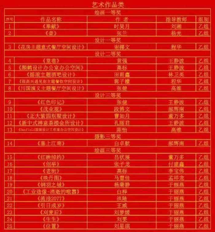 近日,由黑龙江省教育厅主办的2020年黑龙江省大学生艺术展演活动评审在哈尔滨师范大学音乐学院和美术学院举行,本届艺术展演以“奋斗·创新·奉献”为主题。经专家评审,共评出艺术作品奖270个、艺术表演奖142个。我校艺术学院选送的艺术作品类、艺术表演类等30件作品入围决赛,获一等奖3 项、二等奖8项、三等奖19项,获奖数量再创新高。
