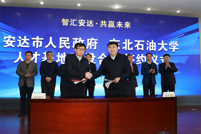 宣讲会上,校地双方分别签订了人才工作站协议、人才基地建设合作协议。