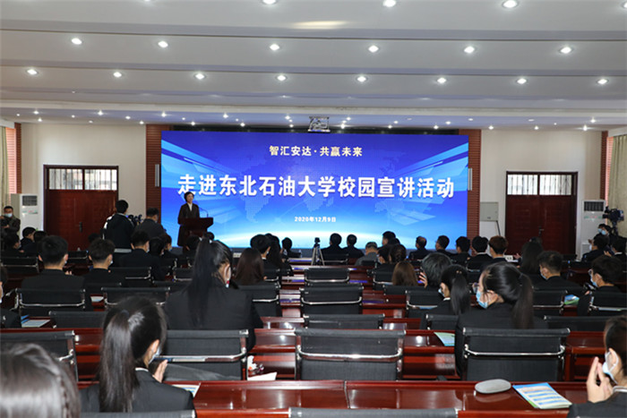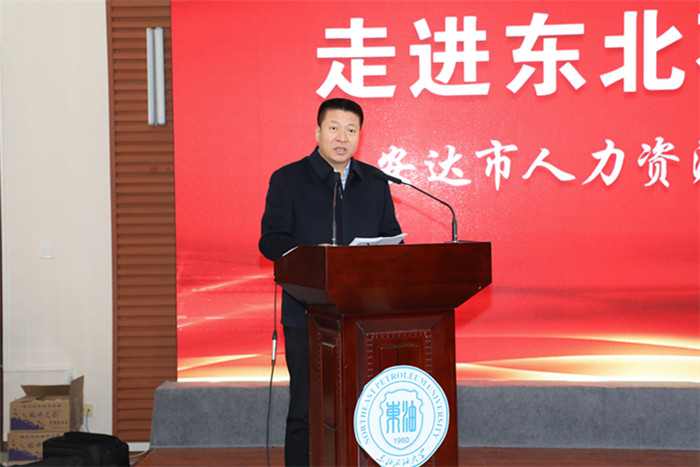 敖丙千做主旨宣讲,从安达文化底蕴、自然禀赋、产业发展前景、城市生态环境、愿景目标等方面,推介了城市发展潜力和发展环境。他指出,新时代呼唤人才,新发展需要人才,新环境造就人才。安达期待东油学子以青春为画笔、才学为颜料,奋力描绘足以骄傲一生的绚烂与精彩。