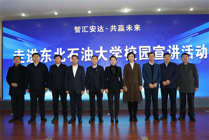(记者 樊星)12月9日,“智汇安达•共赢未来--走进东北石油大学”宣讲活动在我校1H111会议室举行,绥化市委常委、政府常务副市长董文琴,安达市委副书记、市长敖丙千,绥化市人力资源和社会保障局局长王安世,安达市委常委、政府常务副市长张可巍,安达市委常委、组织部部长葛俊辰,安达市委常委、宣传部部长王亚德,安达市政府副市长韩立祥,我校党委班子成员蒋明虎、郝丽红、牟海维、张智勇、徐清亮,校地相关部门负责人,学生代表参加宣讲会。校党委副书记、工会主席郝丽红主持宣讲会。