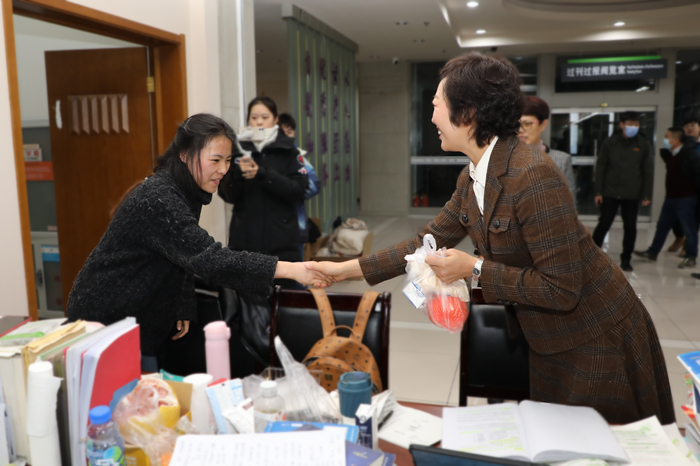 在送温暖的过程中,校领导和老师们亲切与考研学子们交流,细心询问备考及身体情况,鼓励他们要增强信心、持之以恒、树立必胜的决心,并提醒学子们要在最后冲刺阶段做好规划、科学复习、提高效率,更要加强锻炼,劳逸结合,保持健康的身体和良好的心态。