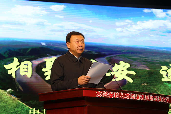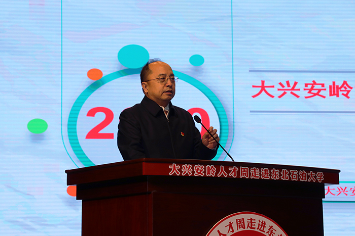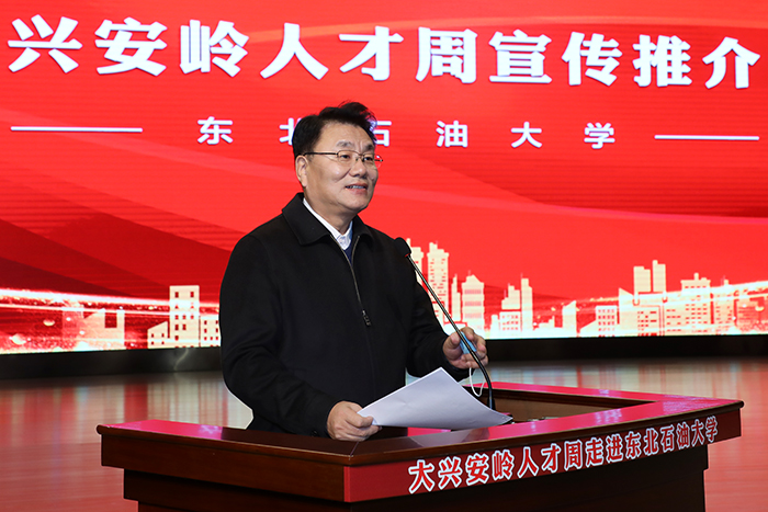 张宝伟介绍了大兴安岭地区近年的经济发展规划、人才队伍建设和引进的相关政策,希望与我校建立长期稳定的合作关系,并对本次地校合作的初心、定位及前景做了阐述。他强调,将同东北石油大学一起为保民生稳就业、为大兴安岭的发展建设、为东北石油大学的美好明天心手相牵、风雨与共。