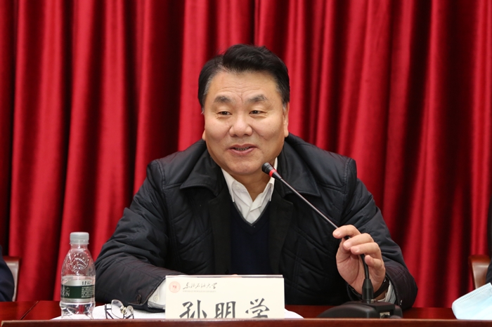 校党委书记孙明学作讲话。他强调,全校各单位要提高政治站位,不断加强对疫情防控的认识;要强化领导,做好带头表率;要强化组织,建立完整严密的组织体系;要强化工作落实,组织安排部署好各项疫情防控工作。