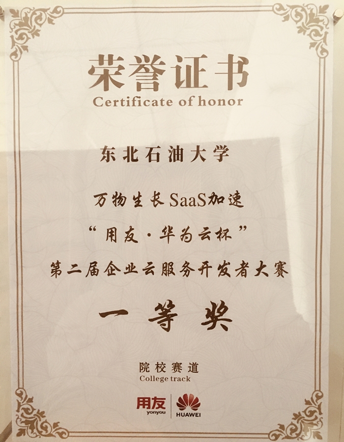 2020用友·华为云杯《企业云服务开发者大赛》于12月8日落下帷幕,由我校经济管理学院2018级本科生于淼、肖瑞、聂雪薇、李安静组成的“东油四小丫”队的作品《益心》获院校赛道一等奖。