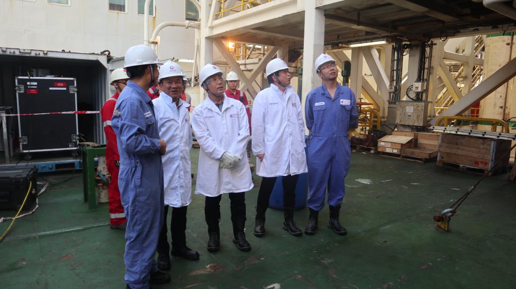 此前,牟海维一行还参观了中海油海南分公司陵水17-2气田“蓝鲸1号”深水钻完井半潜式平台,慰问了在平台上工作的我校校友,并与平台相关工作人员举行座谈。座谈会上,牟海维介绍了我校的基本情况、学校第一次党代会确定的“强陆-拓海-壮新”的发展思路以及学校落实习近平总书记关于建设海洋强国、建设海南自由贸易港的指示精神,建设三亚海洋油气研究院等情况,受到校友和平台工作人员的肯定与赞赏。