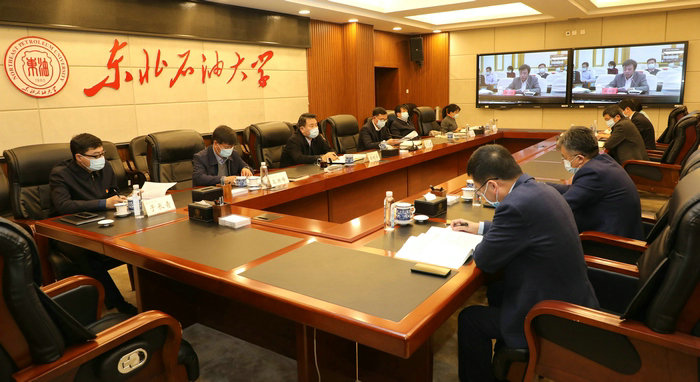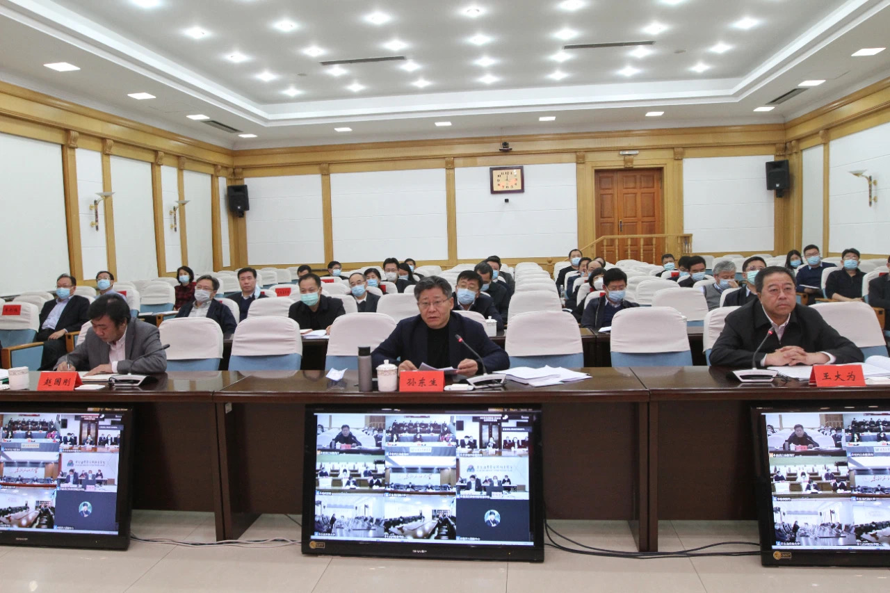 我校在机关5楼会议室设立分会场,校领导孙明学、蒋明虎、高洪峰、牟海维、于长青、董宏丽,学科建设处、科研处、人事处、教务处、研究生部相关负责人线上参加会议。