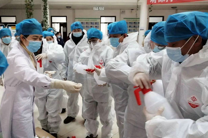 3日上午,在校医院一楼大厅,由校医院医务人员对党员志愿者、保洁人员进行了专业的个人防护及灭菌消杀技术培训,并发放隔离衣、手套等防护物资和消杀药剂。在专业医务人员直接参与下,党员志愿者及保洁人员按照“全面、彻底、不留死角”的原则开展了全面的病毒病菌消杀工作。重点对教室、实验室、办公楼、图书馆、体育馆、浴池、公寓、食堂、电梯间、洗手间、垃圾放置点等场所进行彻底的卫生清洁消毒、通风换气,对校园内使用的空调系统和公共区域物体表面进行预防性消毒处理。
