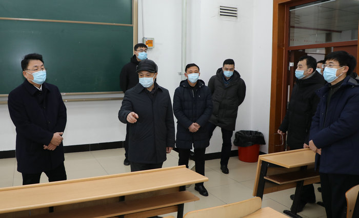 (记者/摄影 许丽娜)3月4日上午,黑龙江省教育厅调研检查组第五组组长、省委教育工委副书记王震一行4人在大庆市教育局局长韩迈的陪同下,来我校检查指导疫情防控及春季开学准备工作。检查组听取了我校疫情防控和开学准备有关情况,并进行了实地踏查。校领导孙明学、蒋明虎、郝丽红、于长青、张亚志,党政办公室、宣传部、后勤管理处、保卫处、学生工作部、研究生部等相关负责人陪同调研检查。