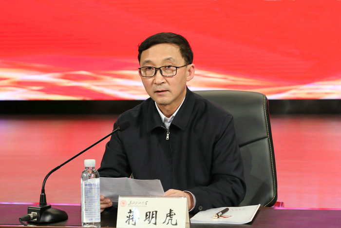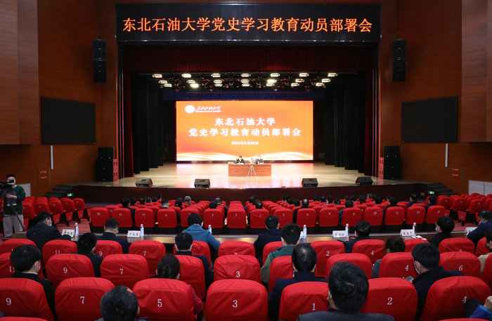 蒋明虎在主持大会时强调,要提高政治站位,从政治、现实和历史的维度深刻领会三个“必然要求”,增强“四个意识”,坚定“四个自信”,做到“两个维护”,切实把思想和行动统一到党中央决策部署上来。要聚焦目标重点,准确把握党史学习教育的目标要求,将“我为师生办实事”和“我为社会办实事”贯穿始终,切实做到学史明理、学史增信、学史崇德、学史力行,努力开创学校发展新局面。要结合学校实际,紧扣立德树人根本任务,聚力高水平百年大学建设目标和“强陆、拓海、壮新”的发展战略,把党史学习教育和巩固“不忘初心、牢记使命”主题教育成果结合起来,和“四史”学习结合起来,和强化用大庆精神办学育人特色结合起来,全面加强党对学校工作的领导,深入贯彻新发展理念,努力构建新发展格局,全力推动学校高质量发展,全面提升服务国家战略、服务能源行业、服务现代化新龙江建设能力。要强化组织领导,确保党史学习教育快启动、高标准、严要求,力戒形式主义、务求取得实效,确保学校“十四五”开好局、起好步,以优异成绩向中国共产党百年华诞献礼。