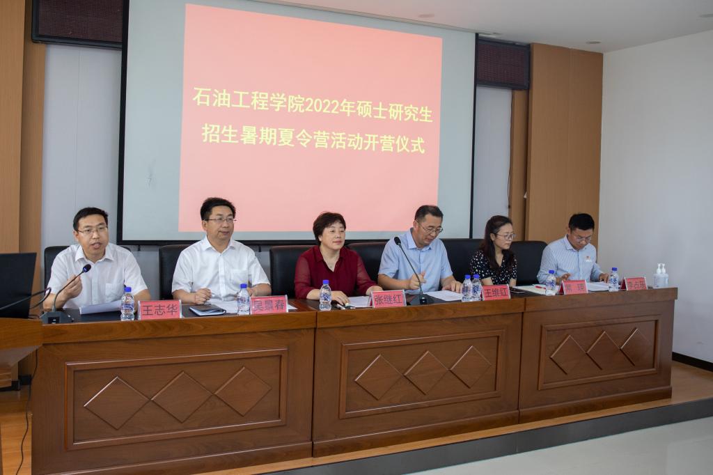 7月12日上午,开营仪式在石油工程学院会议室举行。石油工程学院党委书记张继红在仪式上致欢迎词,校研究生部副主任王维红参加仪式并介绍了学校学位点建设发展、师资力量、教学科研平台及研究生培养优势特色等内容。