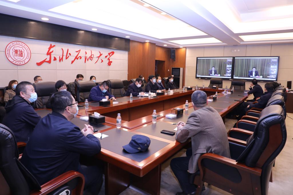 (通讯员 朱雪晴 记者/摄影 吕鸿浩)5月7日,省教育厅召开黑龙江省现代产业学院建设工作推进会,通过视频会议形式部署首批30个具有示范性、引领性的省级现代产业学院建设,省教育厅二级巡视员丁哲学出席会议并讲话。我校在机关5楼会议室设立分会场,副校长牟海维,页岩油气现代产业学院院长、教务处处长李伟,现代产业学院相关负责人参加会议。李伟以“服务国家能源安全;建设现代产业学院‘东油样板’”为题分享建设经验。