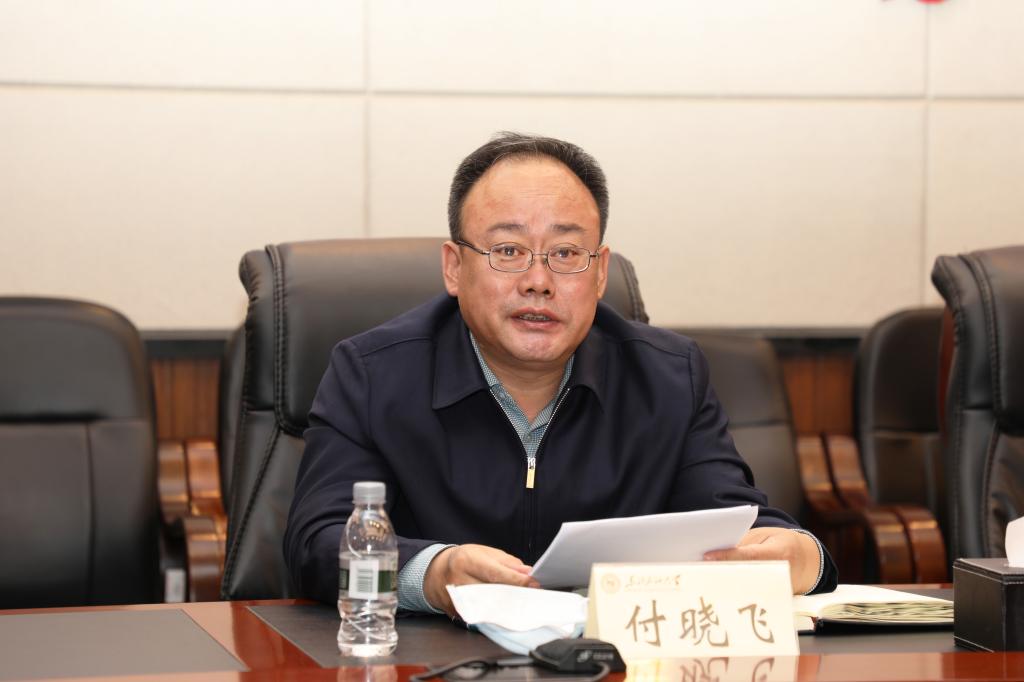 付晓飞在会上讲话。他指出,国无防不强,军队现代化建设需要高素质的军人,高素质的军人来源于高校向部队输送高质量兵员。学校党委高度重视大学生征兵工作,今年征兵工作受疫情影响,需要积极探寻新的工作思路和工作方法,各单位、各学院要强化责任、传导压力、转变动力、拓宽思路,压实检查问效机制,对标任务指标,把征兵工作抓细抓实。