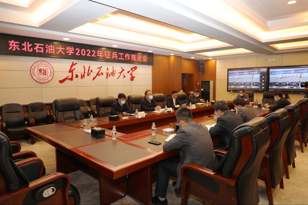 (通讯员 王福军 摄影 王超颖)为扎实有序推进我校2022年征兵工作,确保高标准、高水平、高质量完成年度征兵工作任务,5月10日上午,我校在机关五楼会议室召开2022年征兵工作推进会。会议以线上线下相结合的方式进行,校党委书记付晓飞,校长蒋明虎,副校长高洪峰,征兵领导小组成员单位相关负责人和各二级单位副书记、辅导员参加会议。会议由蒋明虎主持。