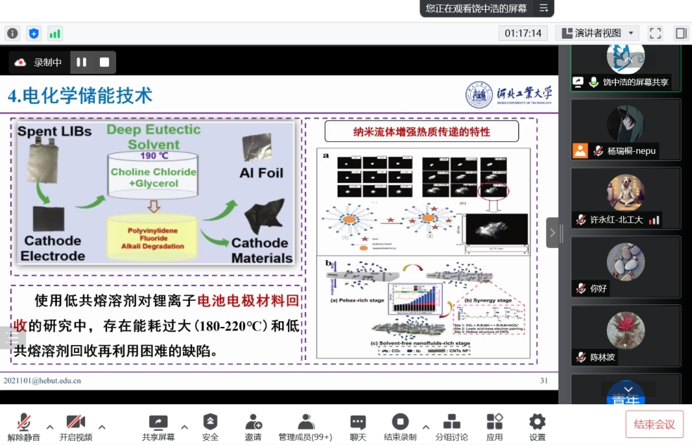 【能源大讲堂】河北工业大学饶中浩教授作《热能与电池储能技术及其应用》报告