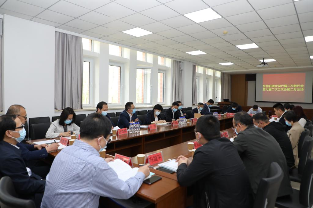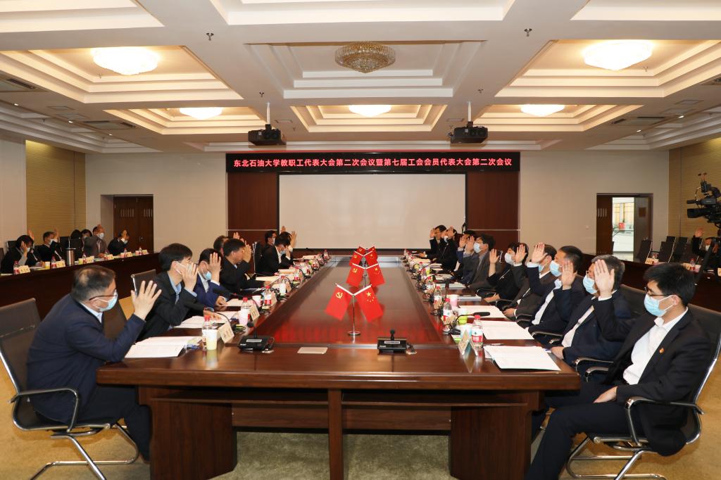 17时30分,大会举行第二次全体会议,高洪峰主持会议。大会表决通过了学校工作报告的决议、“十四五”发展规划纲要(草案)的决议、财务工作报告的决议、工会工作报告的决议、工会经费使用情况报告的决议。