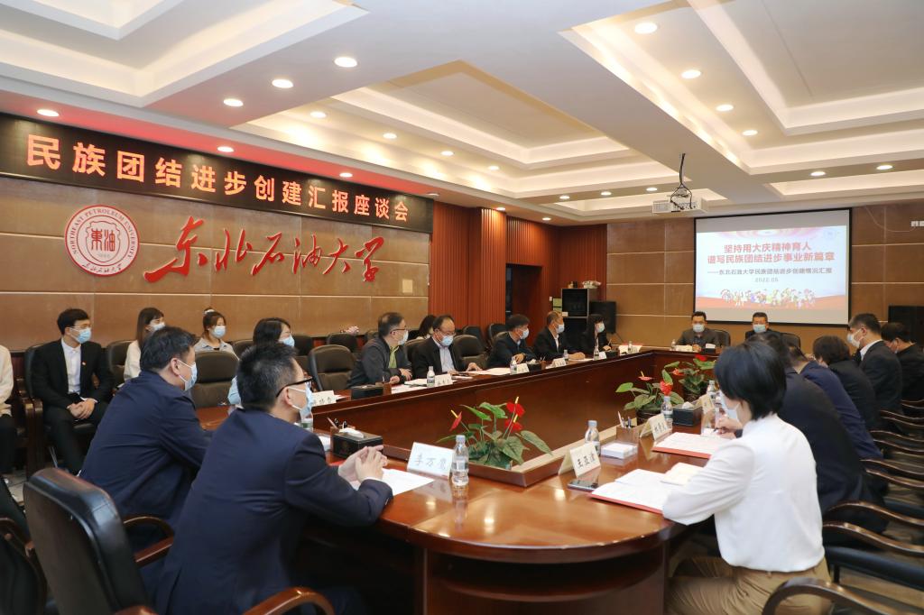 金银华在座谈中指出,东北石油大学在开展民族团结进步创建工作中,紧抓铸牢中华民族共同体意识这条主线,以促进各民族师生共同团结奋斗、共同繁荣发展为主题,注重发挥社会主义核心价值观引领作用,突出大庆精神育人特色,并将民族团结进步工作融入办学育人全过程,取得了较好成效。希望学校全面贯彻习近平总书记关于加强和改进民族工作的重要思想,不断深化内涵、丰富载体、创新方法,促进高校民族团结进步创建工作提质升级。