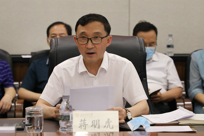 蒋明虎在会上讲话。他指出,全校上下要统一思想,正确认识审核评估的重要意义。实施新一轮审核评估,是落实新时代教育评价和教育督导改革、加快形成中国特色高等教育评估制度体系的重要举措,也是“十四五”乃至今后一个时期高等教育发展十分艰巨且紧迫的任务。学校要以新一轮审核评估评建工作为契机,进一步落实立德树人根本任务、发挥教育评价导向作用,推动本科教育教学改革、提高人才培养质量。要深刻领会、准确把握审核评估的精髓要义。要针对审核评估的新特点,加大宣传培训力度,组织各级领导干部、管理人员和广大师生认真学习相关评估文件,把审核评估的要点读深、读懂、读透,更加突出立德树人导向,坚决破除“五唯”顽疾,突出评估结果使用。要落实责任,全面推进审核评估评建工作。要坚持以评估思想理念引导改革,以评估要点指标推动改革,以评估政策资源支持改革,系统梳理和查找学校人才培养工作中存在的差距和不足,落实督查督办和问责制度,不断推进学校高质量发展。