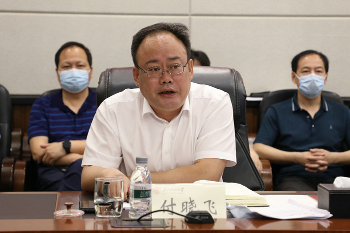 (通讯员 胡烨 记者/摄影 许丽娜)6月27日,我校在机关五楼会议室召开本科教育教学审核评估评建工作启动大会,校党委书记付晓飞、校长蒋明虎等党委班子成员,各教学院部行政负责人、评建工作主要牵头部门负责人线下参会;校管科级以上干部,三级系主任、副主任,副高级以上教师线上参会。付晓飞主持会议。