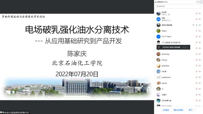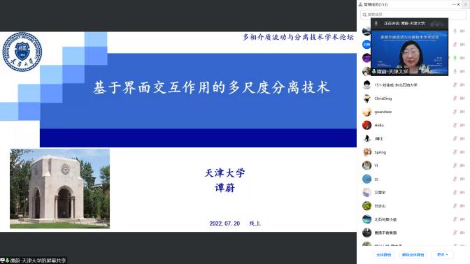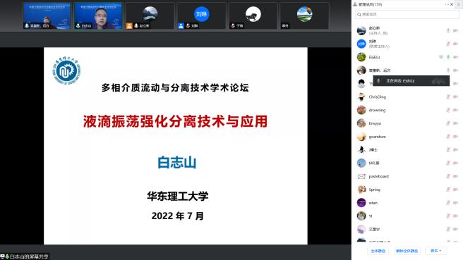 四川大学副校长、国家杰出青年科学基金获得者、博士生导师褚良银教授,天津大学英才教授、天津市教学名师、博士生导师谭蔚教授,无锡太湖学院智能装备学院院长、博士生导师袁惠新教授, 华东理工大学机械与动力工程学院副院长、国家自然科学基金优秀青年科学基金获得者、博士生导师白志山教授,北京石油化工学院副校长、新世纪百千万人才工程北京市级人选、博士生导师陈家庆教授,山东科技大学博士生导师、山东省突出贡献中青年专家刘培坤教授等六位专家作了特邀报告;中科院过程所宋民航副研究员等青年学者在青年论坛作了报告。