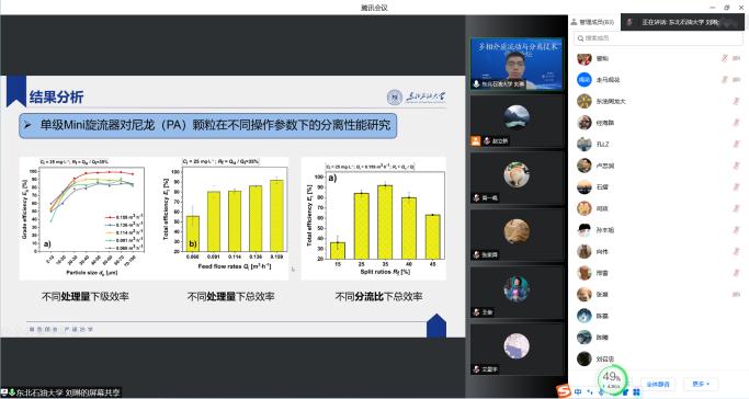 (记者 许丽娜)7月20日,由中国机械工程学会环境保护与绿色制造技术分会主办,我校承办,四川大学、天津大学、中科院过程所、华东理工大学、北京石油化工学院、常州大学、山东科技大学、无锡太湖学院等单位协办的首届多相介质流动与分离技术学术论坛在线上成功举办。中国机械工程学会环境保护与绿色制造技术分会总干事黄刚、我校副校长董宏丽分别致开幕辞,论坛召集人、我校石油石化多相介质处理及污染防治省重点实验室主任赵立新主持论坛活动。来自10余所高校和科研院的近200名师生参加了论坛活动,并针对石油、化工、环保、矿山等领域中的多相介质流动、非均相分离等技术展开了充分研讨和交流。