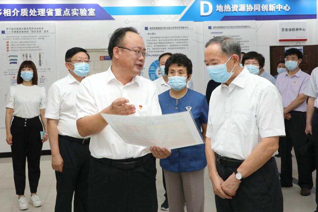 袁贵仁一行还参观了我校陆相页岩油气成藏及高效开发教育部重点实验室和大庆精神育人展馆,对学校着力培养页岩油气专业紧缺人才和具有“五心四力”大庆精神特质高素质人才的经验做法及成效给予肯定。