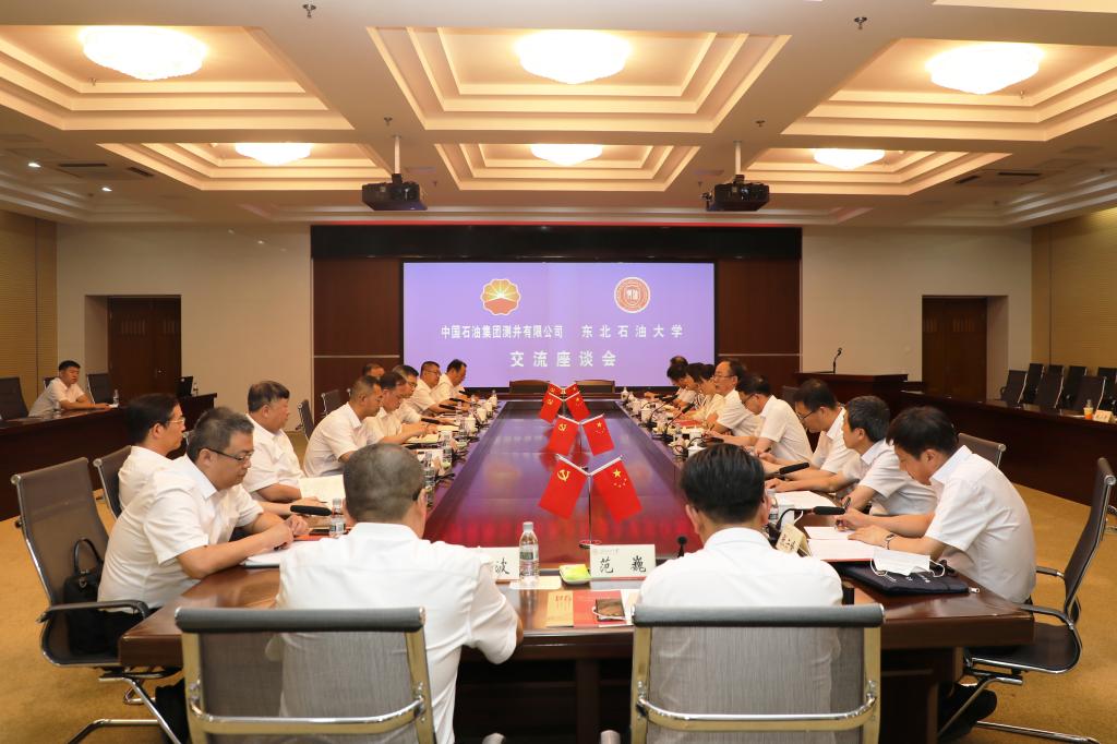 (记者/摄影 王超颖)8月1日下午,中国石油集团测井有限公司总经理、党委副书记胡启月一行来校交流走访,并与我校签署战略合作协议。交流座谈会在图书馆五楼会议室举行,校党委书记付晓飞、校长蒋明虎、副校长董宏丽、相关单位负责人和部分专家、教师代表参加会议。蒋明虎主持会议。