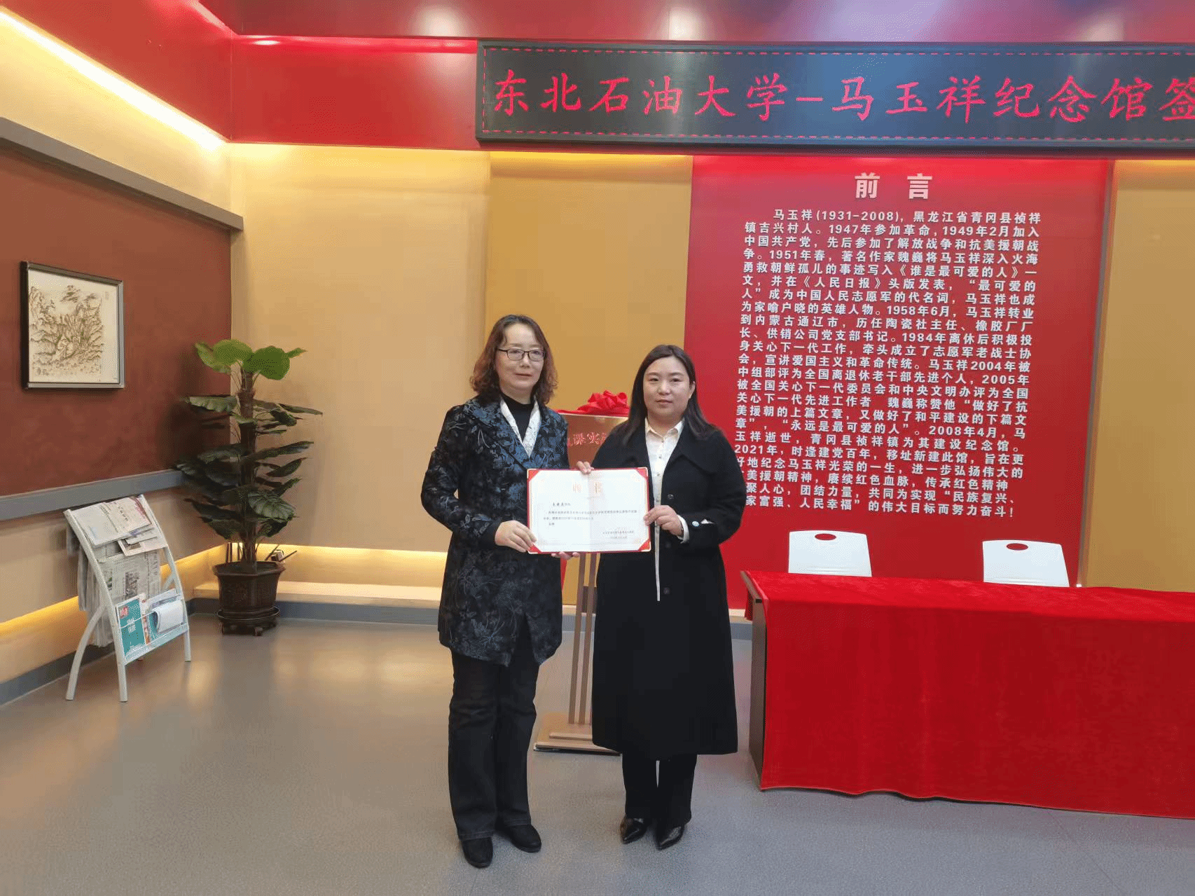 (图/文 胡蓥蓥 记者 杨雨剑)为深入贯彻习近平总书记对学校思政课建设的重要指示精神,落实学校党委“行走的思政课”建设部署,充分发挥黑龙江省“大思政课”实践教学基地(革命纪念馆)的育人功能,不断拓展实践育人的空间和阵地,提高思政课的针对性和吸引力,在纪念中国人民志愿军抗美援朝出国作战75周年之际,10月24日,马克思主义学院院长王鹤岩、副院长冷翠玲及部分教师赴青冈县,与青冈县马玉祥纪念馆签署“大思政课”实践教学基地合作共建协议。
